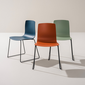 Compatível com todas as bases da coleção, a Catifa 46 permite várias configurações: base de quatro pernas e trenó (empilháveis), pernas de madeira, cavalete (com ou sem rodas) e base de cinco raios com rodas. Os bancos estão disponíveis com base de trenó ou cavalete giratório. Descubra como a Catifa 46 da Arper pode elevar os seus espaços de reunião. Clique agora para solicitar mais informações e um orçamento personalizado.