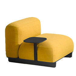 Cada módulo é caracterizado por uma base distinta em polipropileno reciclado, que facilita a limpeza dos espaços e permite a ligação entre os módulos de assento. Funcionalidade adicional é garantida pelos módulos de armazenamento (disponíveis em dois formatos, com possibilidade de cabeamento), o módulo de mesa fixa (que pode ser posicionado no lado direito, esquerdo ou entre os módulos de assento), a mesa lateral independente com altura ajustável. A coleção é completada por duas almofadas acessórias, especificamente feitas para proporcionar maior conforto em configurações específicas, nas quais os módulos de banco de 1 ou 2 lugares podem ser colocados contra o encosto dos módulos de assento. A variedade de materiais e acabamentos que compõem cada módulo permite uma ampla gama de combinações de cores. A coleção pode ser totalmente desmontada, para facilitar a reutilização ou reciclagem dos materiais.
