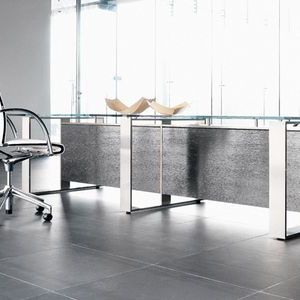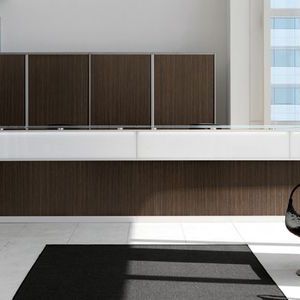 As formas curvas e lineares podem ser livremente combinadas na composição de geometrias sinuosas, além de serem funcionais: este é o conceito dos nossos balcões de recepção. Protagonistas da recepção, as infinitas soluções que podem ser alcançadas por este projeto fornecem amplo espaço aos operadores e visitantes, com planos alternando entre elementos verticais e personalizáveis com uma ampla gama de mesas, sistemas e outros produtos arquitetônicos.