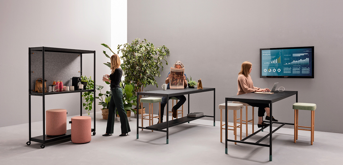 Fluido adapta-se às suas necessidades, transformando uma única sala em múltiplos ambientes ao longo do dia. Seja uma sala de reuniões pela manhã, um espaço de formação à tarde ou áreas de trabalho individuais, este sistema ajusta-se facilmente. Acessórios como gavetas, ganchos para sacos e compartimentos eletrificados aumentam a usabilidade, enquanto o design elegante garante uma estética moderna.